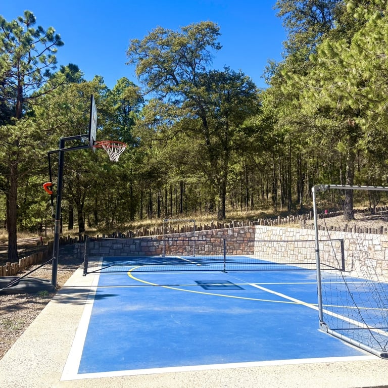 Actualmente contamos con nuestra cancha de usos múltiples lista para fútbol rápido, básquet 21 y pickleball, además de un espacio dedicado al Gaga Ball y un Observatorio. Estamos trabajando para que próximamente también puedas disfrutar de nuestro gimnasio al aire libre, área de yoga y juegos infantiles
